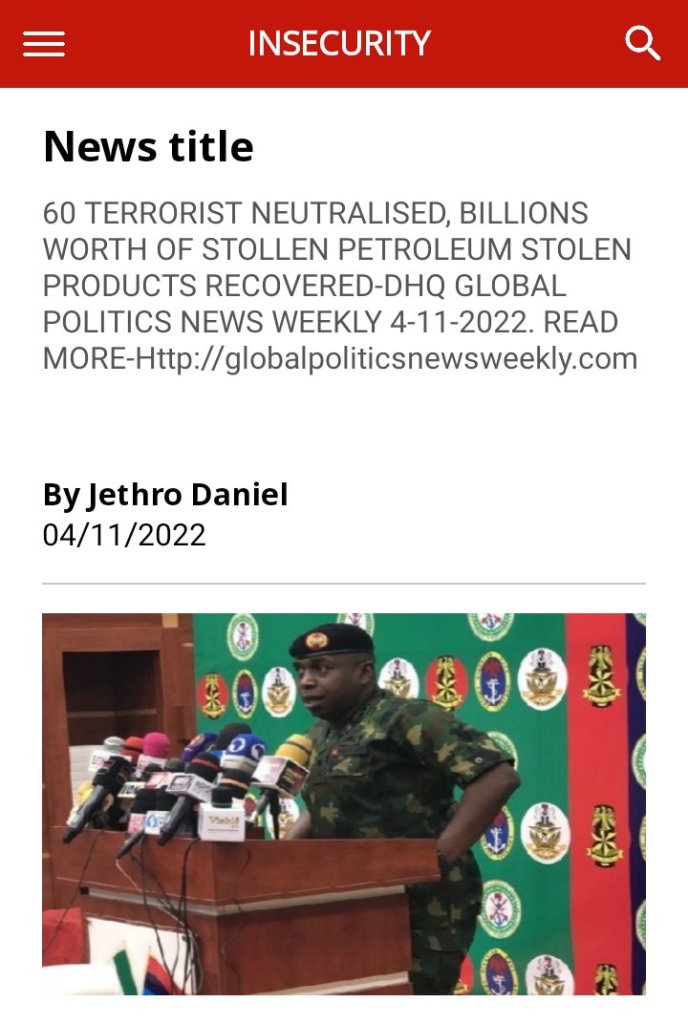 60 TERRORIST NEUTRALISED, BILLIONS WORTH OF STOLLEN PETROLEUM STOLEN PRODUCTS RECOVERED. DHQ