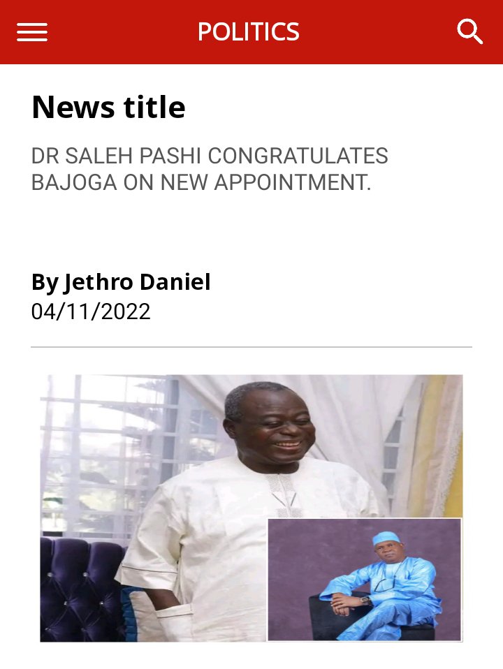 The chairman PDP stakeholders Forum Kaura local government, Dr Saleh Pashi congratulates his Excellency, Ambassador Nuhu Audu Bajoga on new appointment as the chairman kaduna state PDP campaign Council.